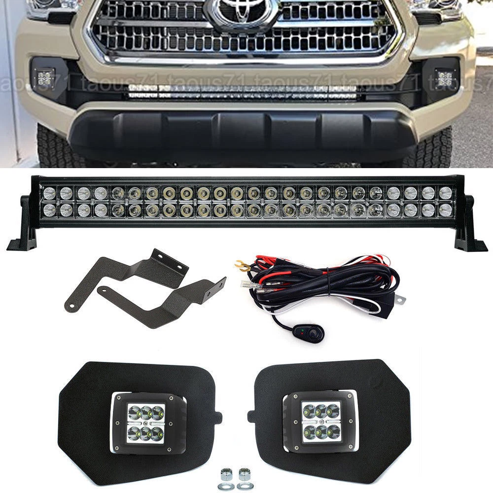 For 16 Up Toyota Tacoma Hidden Lower Bumper 24w Fog Light 180w Led Bar Combo Kit Ebay